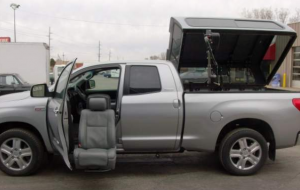 With the pull of a lever the seat spins to face the van door and then extends and tilts for ease of boarding. Similarly, assist steps can be mounted underneath the door to extend and retract as needed.